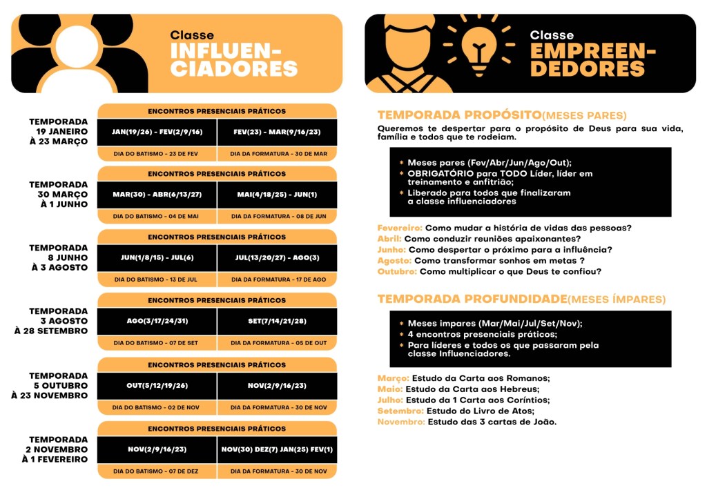 - Estrutura: 13 devocionais online e 4 encontros práticos.